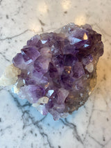 Amethyst is one of our top 5 crystals to have at home. This is an extra large size so it's perfect for a living room. It protects, brings happiness and promotes harmony. This stone is associated with the Third Eye chakra so if used in your bedroom it will promote positive dreams and aids in their interpretation.