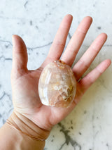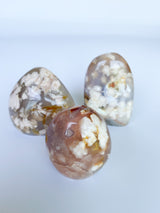 This Agate contains opaque Chalcedony inclusions that resemble tiny floral formations. It is also known as Cherry blossom agate. This stone resonates with the Root and Heart Chakra, working to stimulate both energy centers, allowing one to feel grounded and secure in giving and receiving love.