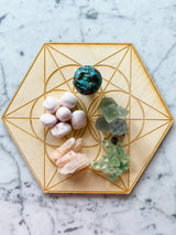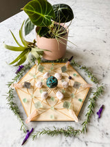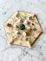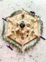 A crystal grid is created by arranging energetically charged stones in a geometric pattern to manifest a specific intention. Using a crystal grid gives you a direct line of communication with the universe.