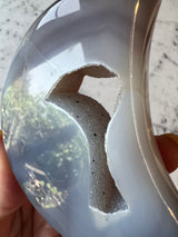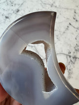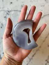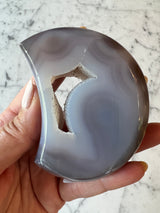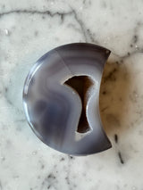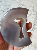 Carved and polished crescent moon agates are beautifully done. Each one has an exposed sparkly druzy center.