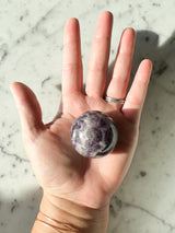 This beautiful variety of Moroccan Amethyst has a chevron appearance, with a deeply saturated purple hue. These are natural specimens, color and banding may differ slightly from the picture. A sphere will be intuitively chosen for you.