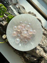 This variety of Rose Quartz is created when platinum, silver and gold are heated and bonded to the stone. Angel Aura Rose Quartz contains all the inherent properties of Rose Quartz, working as a heart healer. Additionally, the bonding of additional minerals give it an ethereal energy and iridescent sparkle.
