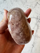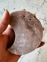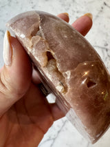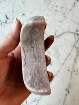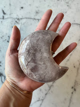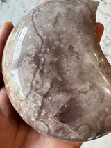 Polished moon-shaped Pink Amethyst with swirls of pink and purple. These are thick and juicy, and substantial in size. They have a flat bottom and beautiful polish.