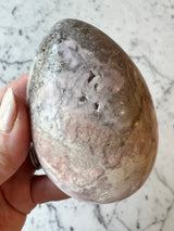 Pink Amethyst carved into an egg form is a beautiful addition to your altar or crystal collection. An egg symbolizes new life and un-hatched potential. It brings hope and purity and serves as a symbol of fertility. In some Asian cultures, the egg represents wealth and good fortune.