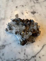 Pyrite, also known as Fool's Gold, is an Iron Sulfide mineral. This item includes Galena, a lead sulfide, and Quartz, a Silicon Dioxide. I love when specimens have different complimenting crystals, and this is one of them.