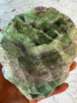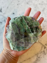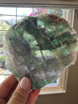 This is a beautiful piece of multicolored Fluorite. Against a light source you can see the vivid streak of saturated purple and green