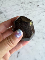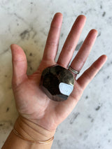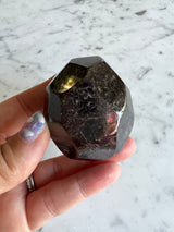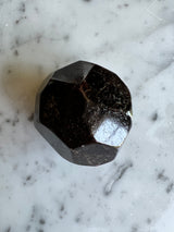 This is an Almandine Garnet from India. This stone has an ancient connection to the earth, at a time when humans were more closely grounded to the earth. In our modern times this same connection can be fostered with this energetic talisman. Due to its bond with the earth it also helps to garner psychic protection, keeping the body firmly rooted and protected.