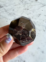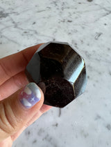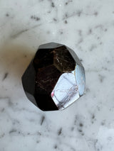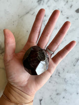 This is an Almandine Garnet from India. This stone has an ancient connection to the earth, at a time when humans were more closely grounded to the earth. In our modern times this same connection can be fostered with this energetic talisman. Due to its bond with the earth it also helps to garner psychic protection, keeping the body firmly rooted and protected.
