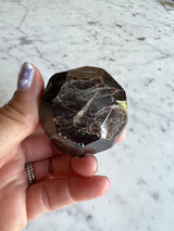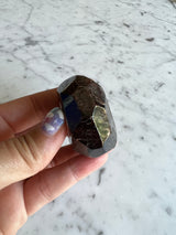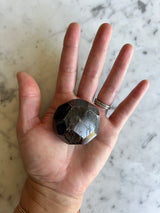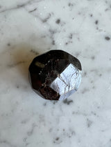 This is an Almandine Garnet from India. This stone has an ancient connection to the earth, at a time when humans were more closely grounded to the earth. In our modern times this same connection can be fostered with this energetic talisman. Due to its bond with the earth it also helps to garner psychic protection, keeping the body firmly rooted and protected.