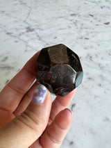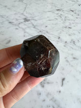 This is an Almandine Garnet from India. This stone has an ancient connection to the earth, at a time when humans were more closely grounded to the earth. In our modern times this same connection can be fostered with this energetic talisman. Due to its bond with the earth it also helps to garner psychic protection, keeping the body firmly rooted and protected.
