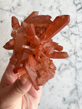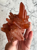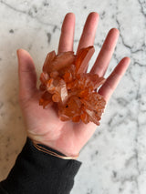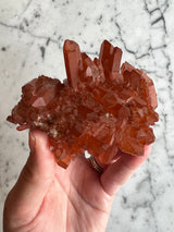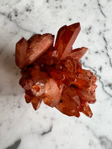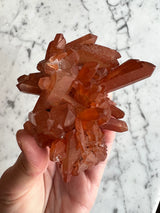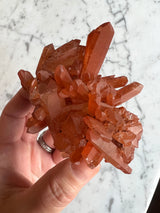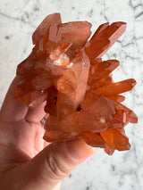 This is a high grade form of Tangerine Quartz, demonstrated by the saturated orange color. The rich and vibrant color comes from inclusions and encrustations of Iron Oxide.