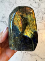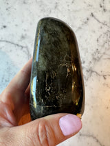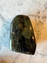 Labradorite is a magical stone, truly! It contains an exceptional play on colors called labradorescence. This is what gives it that unique flash of colors.