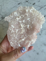 Apophyllite is a high vibration stone that is commonly sourced in clear or white. The rarest color is pink. These are very hard to source, especially beautiful double sided specimens such as these. Apophyllite connects you to the higher realms, angels and fairies.