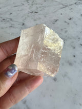 Pink Optical Calcite ranges from pale pink to a deep rose color. There are also hidden rainbows which make this stone all the more special. If you are looking to heal from emotional trauma, pink Calcite is a perfect stone. It helps to clear the energetic scars of heart breaks, betrayal and suppression, allowing for joy and love to once again harmonize the heart space.