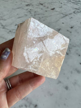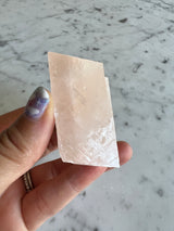During meditation you can hold a piece of Pink Optical Calcite in her left hand and imagine an energetic teether connecting to your heart space. Let this energy expand to your whole chest filling you with compassionate love and emotional healing.