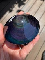 This stone is a volcanic glass. The colors seen in Rainbow Obsidian are due to the different layer of molten lava.