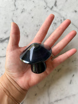 A charming and a one of kind mushroom carving, sourced and carved by the miner in Mexico. This artisan enhances the natural coloration and variety of banding found in this stone. He sees the potential in each piece and carves his vision, brining beautiful shapes to life.