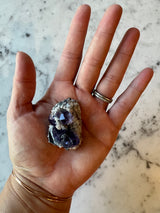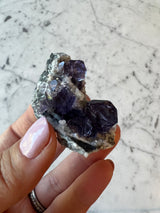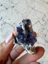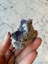 Beautiful quality of purple Fluorite amongst sparkly Quartz druzy is some serious crystal bling. If you prefer raw to polished, these don't disappoint.