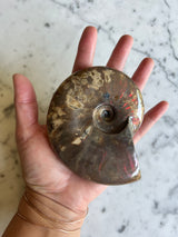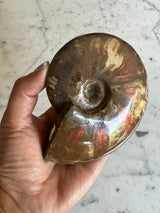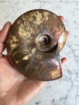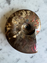 This Ammonite is polished showing off vibrant red and orange colors that are 100% natural. These are truly one of nature's many magical gifts.
