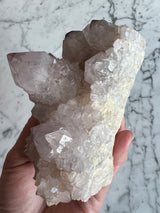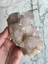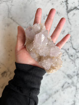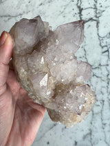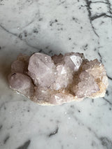This variety of Quartz is only found in South Africa. It is also known as Pineapple Quartz. It consists of large Quartz points covered with druzy, giving it a sparkly appearance. This variety is Amethyst with varying shades of purple.