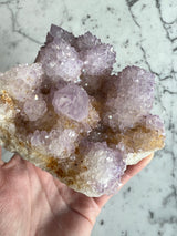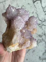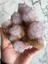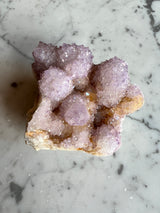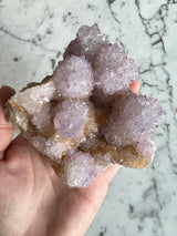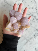 This variety of Quartz is only found in South Africa. It is also known as Pineapple Quartz. It consists of large Quartz points covered with druzy, giving it a sparkly appearance. This variety is Amethyst with varying shades of purple.