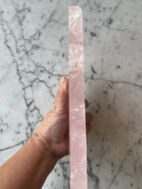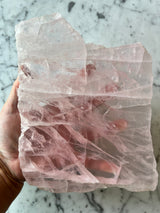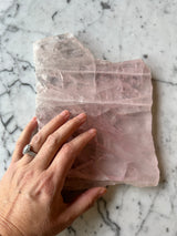 Rose Quartz is one of my top five crystals to own. Everyone should have a Rose Quartz for its gentle and loving energy. This is polished Rose Quartz shaped into a flat surface.