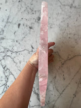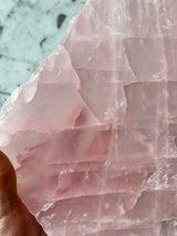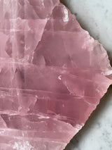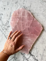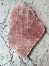 Rose Quartz is one of my top five crystals to own. Everyone should have a Rose Quartz for its gentle and loving energy. This is polished Rose Quartz shaped into a flat surface.