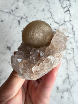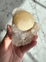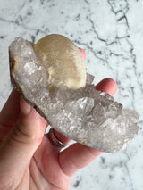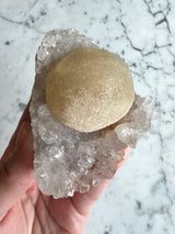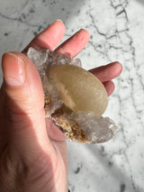 This rare form of Fluorite is only sourced from one place in the world, India. This is a unique botryoidal formation that resemble a fried egg, represented by the yellow Fluorite. Botryoidal means having or reminiscent of grapes.