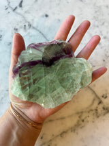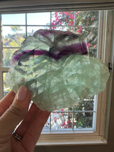 This is a beautiful piece of multicolored Fluorite. Against a light source you can see the vivid streak of saturated purple.