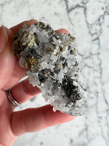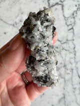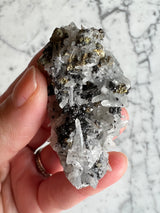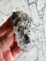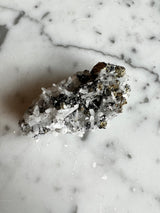 A beautiful Quartz cluster with many needle-like points. This piece has a significant bed of Galena.