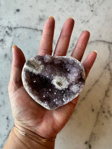 This Amethyst comes from a Rainbow Galaxy lot. The coloration goes from very deep purple to light lavender. Amethyst from Uruguay is one of the most coveted for its high quality and saturation of color. These are beautifully carved with the edges polished. The heart shape has traditionally symbolized sincerity and clarity. It also represents our center of emotions.