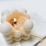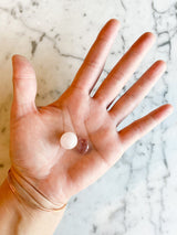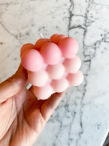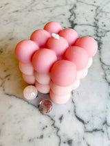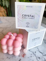 Each bubble candle contains one small Rose Quartz sphere. This crystal was chosen to boost the heart chakra, allowing for self love and resiliency.