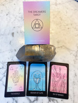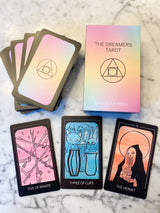 The Dreamers Tarot is a modern take on the traditional 78 card tarot divination system. Keeping to the traditional structure but updating the major arcana, suites, and court cards to be more archetypal and non binary .