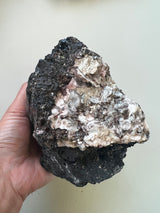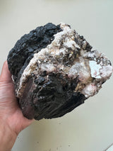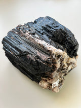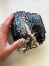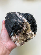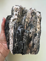 This listing is for an XL raw chunk of Black Tourmaline with inclusions of Albite(white) and Mica(silver). I personally seek out Tourmaline with these inclusions. I feel they round out the overall energetic imprint of Black Tourmaline.