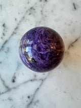Charoite is a stone that is hard to source because it only comes from one place, Russia.